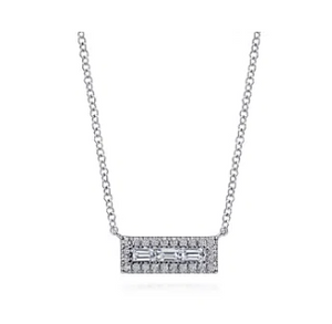14K White Gold Baguette and Round Diamond Rectangle Pendant Necklace .28 CTW NK6217W44JJ