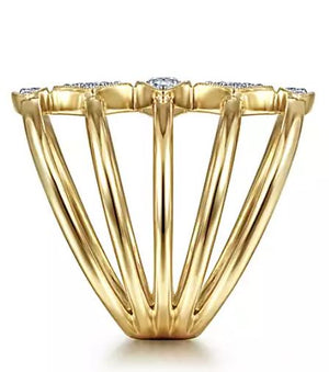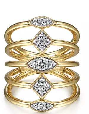 14K Yellow Gold Geometric Station Diamond Pavé Statement Ring
