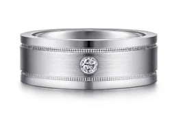 14K White Gold Diamond Mens Wedding Ring in Satin Finish 8MM,.06CT MR15673ALZJJ