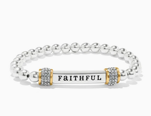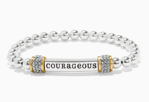 BRIGHTON MERIDAIN STRONG STRETCH BRACELET. Easy on easy off, show the world what you are, Strong, Faithful, Grateful, Courageous or happiness. Wear alone or stack them up. Two Tone with just the right amount of bling. Makes a wonderful gift.