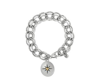 Our new 2023 Brighton Power of Pink Bracelets are in. These 2 sided charm bracelets are two tone. One side has the breast cancer logo and says love, the other side has a compass with gold tone heart. These are collectibles. Easy lobster lock to close.  Brighton donates $5.00 to breast cancer organizations for each bracelet sold. Makes the perfect gift. Collect them while supplies last.