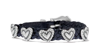 Boho chic and casual design at its best - hearts inside a "roped" frame surround a span of hand-braided leather. It combines the iconic design elements that make every Brighton accessory a wearable work of art. Whether you pair it with your favorite denim or a dress, it will garner compliments. This color is Black.