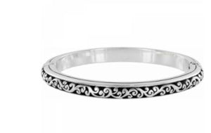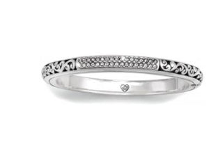 With gorgeous piercings and rhinestones, this bangle looks sensational when layered with the Sacred Heart bangle.