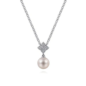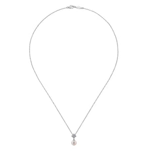 Timeless grace takes center stage in the Lusso Pendant from the Gabriel Collection. A luminous 7.5 mm natural pearl rests elegantly at the heart of this design, framed by a delicate halo of near-colorless diamonds totaling 0.07 carats.