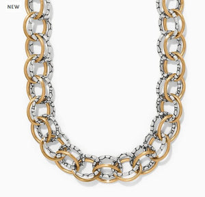 Inspired by 3000-year-old Balinese jewelry techniques, this pebble-textured necklace with modern chunky links is utterly timeless. In silver and gold, it goes with all your jewelry.