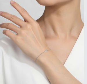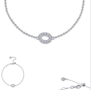 Delicate and sweet. This sideway, adjustable, and stackable designer letter "O" bracelet is set with Lafonn's signature Lassaire clear simulated diamonds in sterling silver bonded with platinum.