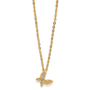 The **Enchanting Butterfly Necklace** from the Enchanting collection is a graceful piece featuring a gold-plated finish and sparkling fine-quality crystals. Its adjustable length ranges from 16" to 18", with a 3/8" pendant drop. Finished with a secure lobster claw closure, this elegant necklace adds a touch of whimsy to any look.