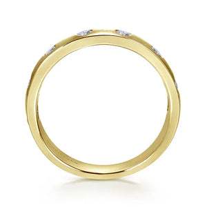 Sophisticated and radiant, the Vitoria Ring from the Devotion Contemporary Collection blends timeless design with modern refinement. Crafted in rich 14K yellow gold, this straight-style band features a brilliant round natural diamond centerpiece accented by additional sparkling stones, totaling 0.17 carats.