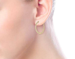 14K Yellow Gold French Pavé 20mm Round Inside Out Diamond Hoop Earrings are a gorgeous size to wear and enjoy everyday. 14kt yellow gold, 0.70 ctw are rich and elegant looking. With Gabriel's screw in back, never worry about losing an earring again.