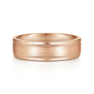 14K Rose Gold 6mm - Satin Polish Center and Milgrain Edge Men's Wedding Band