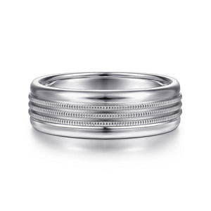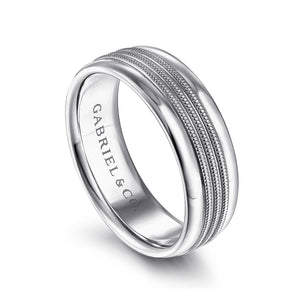 14K White Gold 7mm - Center Rope Channels and Polished Edge Men's Wedding Band in High Polished Finish