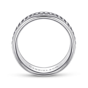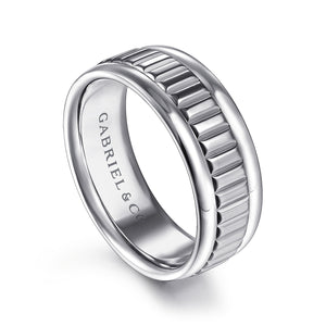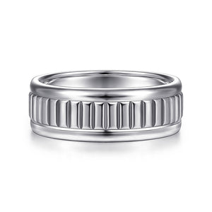 14K White Gold 8mm - Carved Men's Wedding Band in High Polish Finish