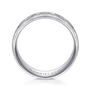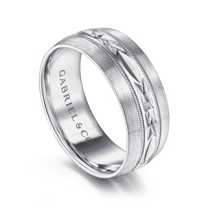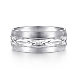 14K White Gold 8mm - Engraved Men's Wedding Band in Satin Finish