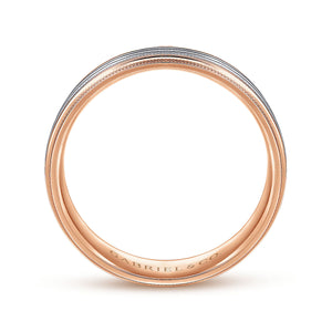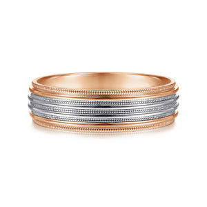 14K White-Rose Gold 6mm - Milgrain Channel Men's Wedding Band