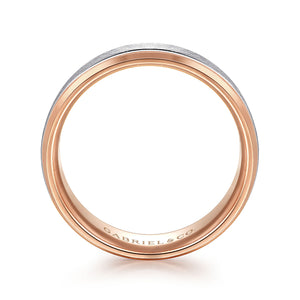 14K White-Rose Gold 7mm - Beveled Edge Men's Wedding Band in Horizontal Brush Finish