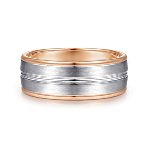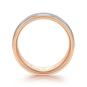 14K White-Rose Gold 8mm - Two Tone Men's Wedding Band in Satin Finish
