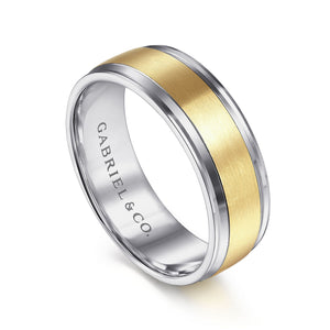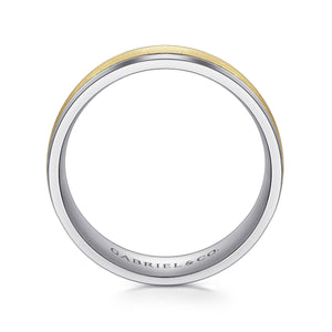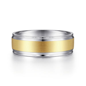 14K White-Yellow Gold 7mm - Men's Wedding Band in Satin Finish