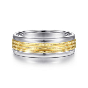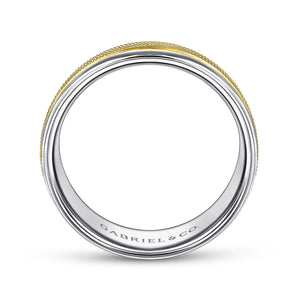 14K White-Yellow Gold 7mm - Two Tone Men's Wedding Band in High Polished Finish