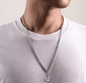 Make a stylish statement with this maritime pendant. An anchor silhouette is constructed in 925 sterling silver and accented with 0.10cts of diamonds for subtle brilliance. Sold individually, this pendant can be paired with a chain of your choosing. To purchase with the chain we've paired with this pendant please see style number NKM7154-22SVJJJ.