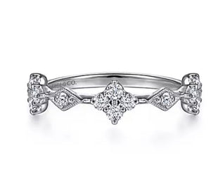 Introducing an embodiment of refined elegance from the Gabriel Stackables collection. Crafted in luminous 14k white gold, this stackable ring epitomizes timeless sophistication. At its heart lies a captivating 0.40 carat diamond, delicately set to illuminate its natural brilliance. With a faint color and a minimum SI2 clarity grade, the diamond exudes understated charm, suitable for both everyday wear and special occasions. Its classic design, complemented by a 6.50mm center stone, ensures versatility and allure. Whether worn alone for a subtle statement or stacked with other pieces from the collection, this ring is a symbol of enduring beauty and style. Elevate your ensemble with the timeless allure of this stackable diamond ring by Gabriel.