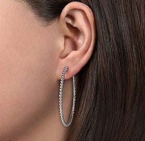 These Sterling Silver 50MM Bujukan Hoop Earrings from Gabriel & Co. are the perfect go to Hoops for work or play. Comfortable and light these earrings with Gabriel & Co special screw in lock will stay in place securely and quickly become your go- to earrings. These earrings are for the woman that likes large hoops.
