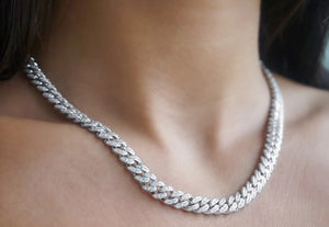 'BABY ICED CUBAN NECKLACE' available in genuine 925 sterling silver or genuine 14K yellow gold vermeil. Necklace measures 16 inches long. Will not tarnish & water resistant. Available in Yellow or White.