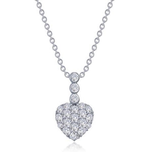Delicate and sweet. This charming adjustable designer necklace features a puffy heart set with Lafonn's signature Lassaire clear simulated diamonds in sterling silver bonded with platinum.