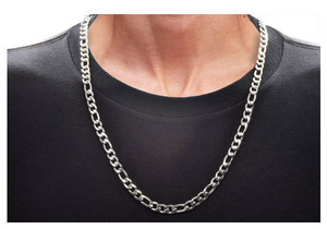 The Men's Stainless Steel Figaro Link Chain, measuring 24 inches in length, is a timeless and versatile accessory for the modern man. Crafted from high-quality stainless steel, this chain features the classic Figaro link design, characterized by a pattern of alternating short and elongated links. The durable construction ensures long-lasting wear, while the polished finish adds a touch of sophistication. Suitable for both casual and formal attire, this chain is perfect for making a subtle yet stylish statement. Whether worn alone or paired with a pendant, it is an essential addition to any jewelry collection.