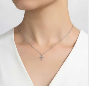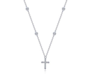 Dainty and charming. This cross necklace is set with Lafonn's signature Lassaire simulated diamonds in sterling silver bonded with platinum.