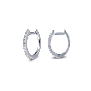 Cute and dainty. These Lafonn oval huggie hoops are set with Lafonn's signature Lassaire simulated diamonds in sterling silver bonded with platinum. 10 mm x 11 mm Oval.