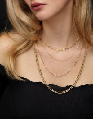 14K Yellow Gold 6.1mm Paperclip Chain with Lobster Lock.  This 30" inch Paper Clip Necklace is a midweight Necklace and looks like a statement Necklace. This  necklace can be worn alone or can be paired with other layering necklaces.