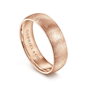 14K Rose Gold 6mm - Men's Wedding Band in Diamond Brush Finish