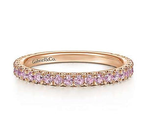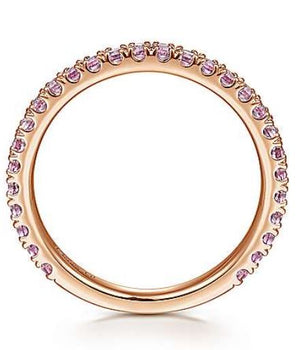 She'll be tickled pink by this charming stackable ring that doubles down on the feminine hue. Crafted from 14k rose gold, this scalloped band is studded with breathtaking pink sapphires. Embrace your softer side with this lovely ring.