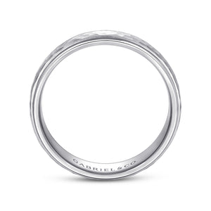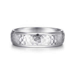 14K White Gold 6mm - Hammered Finish Men's Wedding Band