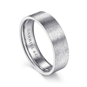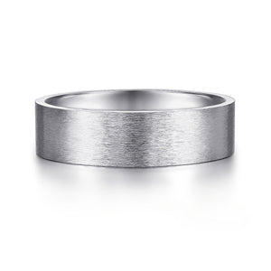 14K White Gold 6mm - Men's Wedding Band in Horizontal Brush Finish