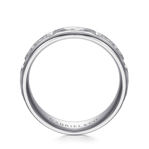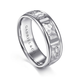 14K White Gold 7mm - Hammered Station Men's Wedding Band
