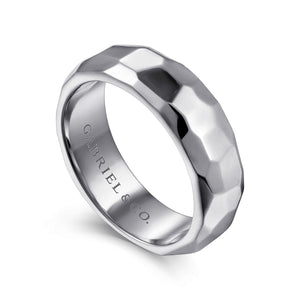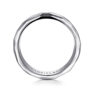 14K White Gold 7mm Mens Wedding Band in High Polished Finish