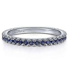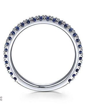 A timeless stackable ring with a sleek straight silhouette and dozens of glamorous sapphires. Crafted from luxe 14K white gold, this September birthstone ring effuses any ensemble with a pop of vibrant blue color.