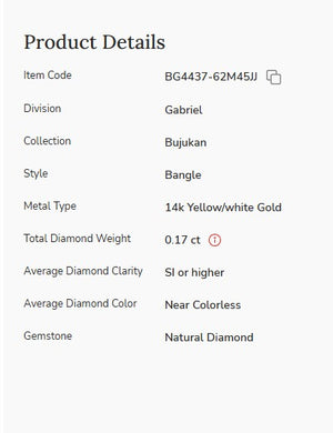 Metal Type:14k Yellow/white Gold size 5.75 (fits petite and average arms)