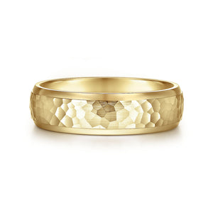 14K Yellow Gold 6mm - Hammered Finish Men's Wedding Band