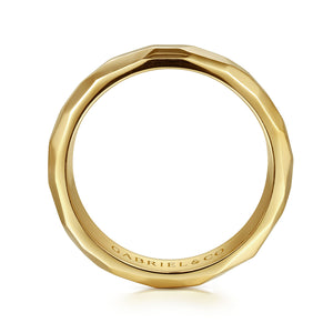 14K Yellow Gold 7mm - Hammered Men's Wedding Band in High Polished Finish