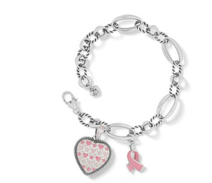 Our 2022 Power of Pink bracelet is wonderfully designed to be symbol of hope for everyone who is touched by breast cancer. Beautiful shades of pink enameled stars and hearts grace the front of this timeless 'love' charm.