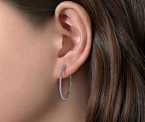 These Sterling Silver 30MM Bujukan Hoop Earrings from Gabriel & Co. are the perfect go to Hoops for work or play. Comfortable and light these earrings with Gabriel & Co special screw in lock will stay in place securely and quickly become your go- to earrings. These earrings are for the woman that likes the small to medium size.