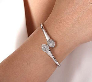 Gorgeous Boutique Sterling Silver Hinged Bangle for easy on easy off. White Sapphire Pave adorne the both teardrop designed.
