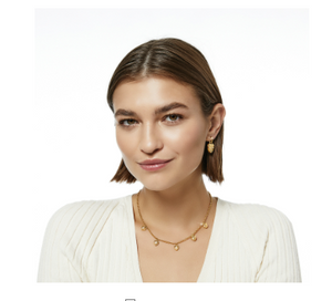 Introducing the Esprit Collection - where vivacious cleverness meets exquisite style. Our Esprit necklace, adorned with gleaming gold heart-shaped stations and centered with hand-set pave crystals, captures the essence of this unique concept.