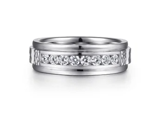 14K White Gold Diamond Mens Wedding Ring in Sand Blast Finish. 7MM .50 CTW MR15508ALZJJ