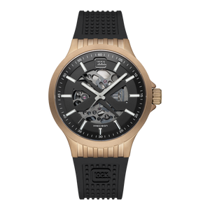 Glock firearms are renowned for their exceptional quality and precision, characterized by robust construction, reliability, and outstanding performance. This same commitment to excellence extends to Glock timepieces, ensuring they are crafted with meticulous attention to detail, durability, and precision. The result is a collection of watches that embody the same high standards, reliability, and craftsmanship that have made Glock firearms a trusted choice worldwide. The Glock watch features a case size of approximately Ø 44 mm and comes with an RTF strap and a coyote clasp. It is equipped with Swiss Super-LumiNova® technology, ensuring that the hands and indices are brightly illuminated for enhanced visibility in low-light conditions.