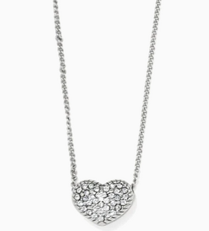 A delicate approach to accessorizing. This quietly understated encrusted Heart necklace is so precious and effortless that it can be worn every day, on its own or layered with any style of necklace. The reverse side is finished off with a single stone in the center.