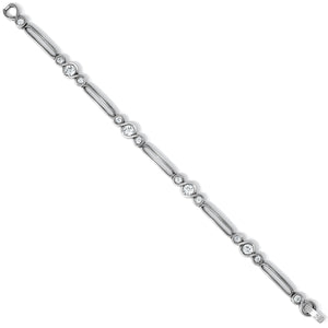 Simple lines intertwine in a subtle, repeating infinity-shaped frame, all to show off Swarovski crystals. When you wear this architecture-inspired bracelet, the look will be both modern and classic.