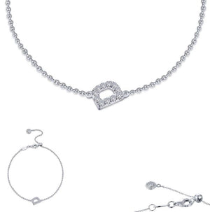 Delicate and sweet. This sideway, adjustable, and stackable designer letter "D" bracelet is set with Lafonn's signature Lassaire clear simulated diamonds in sterling silver bonded with platinum.